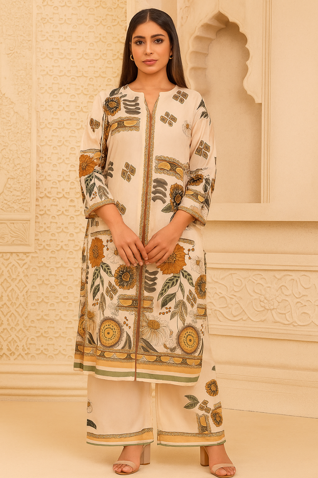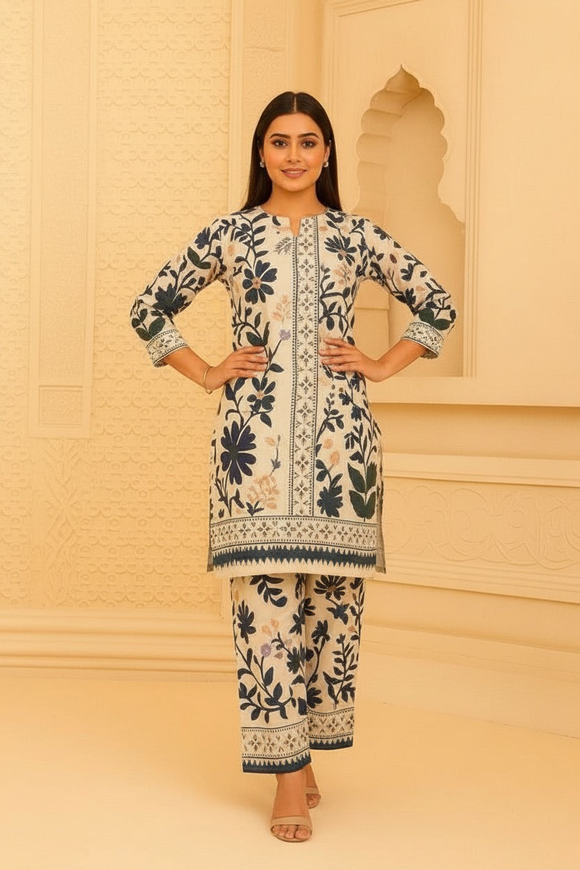 CREAM CANVAS ethnic daily wear coord set for women